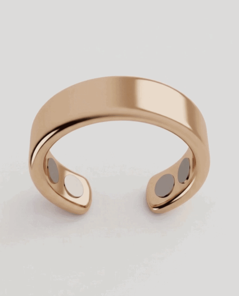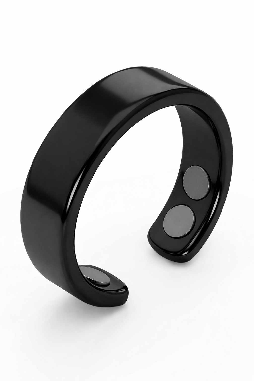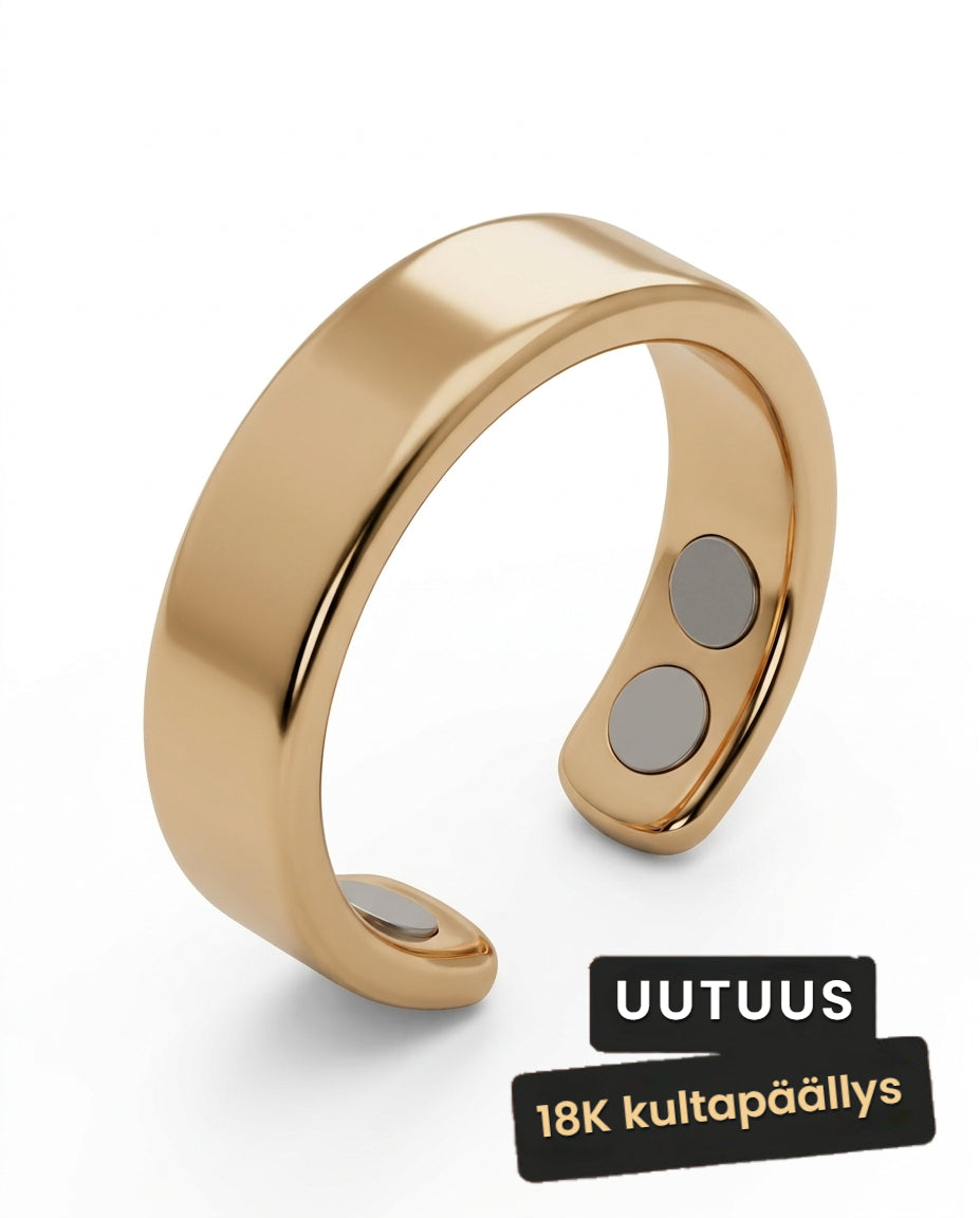 Innovatiivinen hyvinvointisormus, joka yhdistää magneettiterapian ja akupainannan tukemaan kehon omaa tasapainoa – huomaamattomasti ja elegantisti.