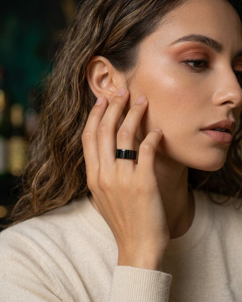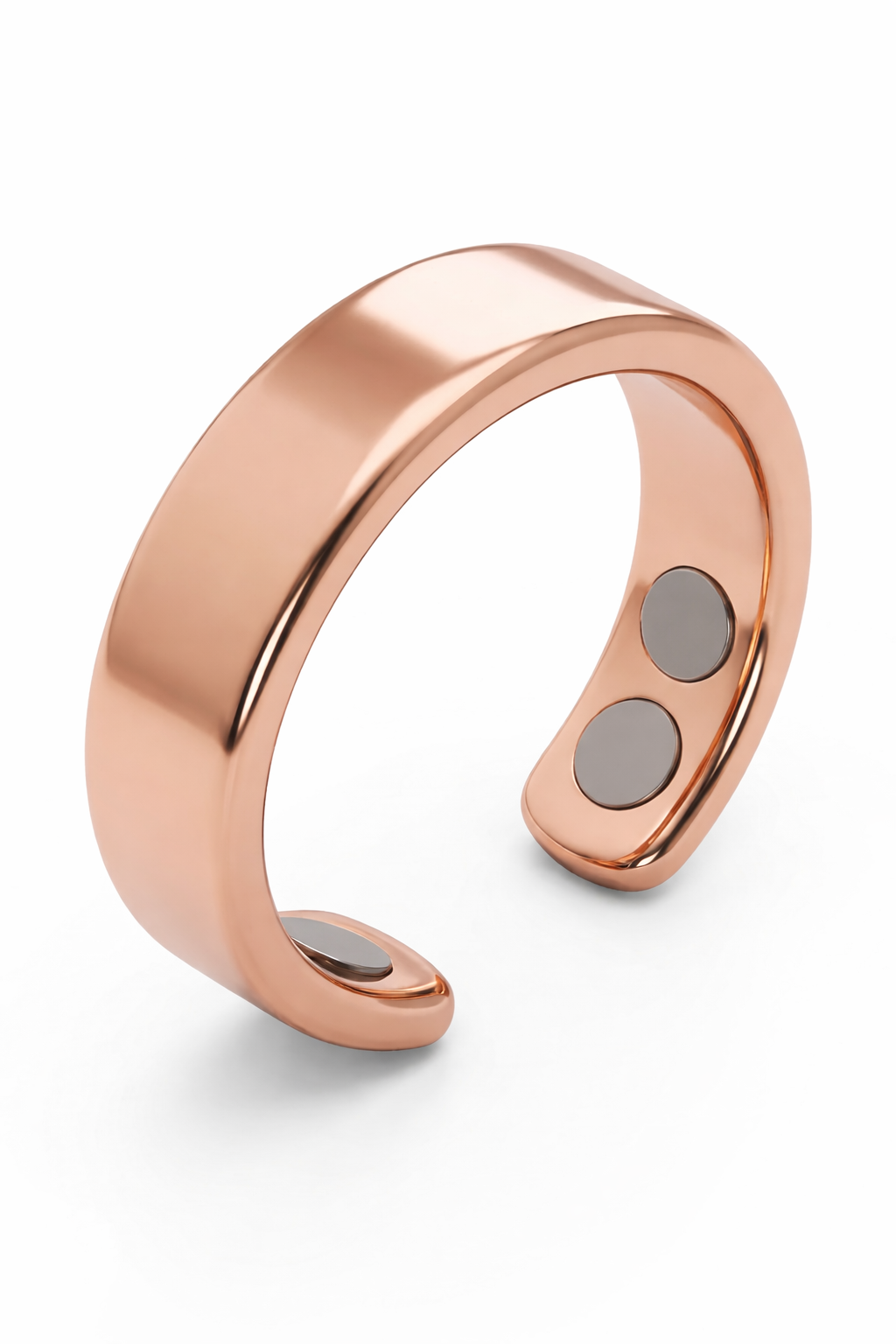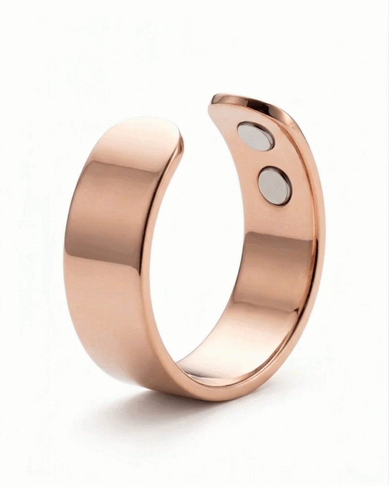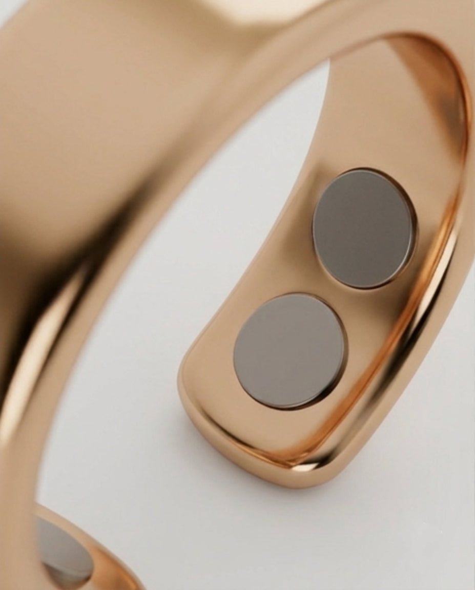 Innovatiivinen hyvinvointisormus, joka yhdistää magneettiterapian ja akupainannan tukemaan kehon omaa tasapainoa – huomaamattomasti ja elegantisti.